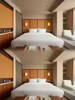 On the super large bed, the soft white bedding is as fluffy as clouds. Lying down feels like being gently embraced, making me feel like I could sleep soundly until morning~ At the foot of the bed, a wooden low bench neatly holds folded towels and a few interesting books. Flipping through a few pages before sleep is pure bliss.