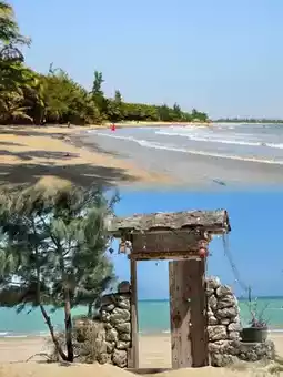 - The world's Guinness record for "the narrowest beach separating the sea and the river". One side is the waves of the South China Sea, and the other side is the still water of the Wanquan River. 📷 Aerial photography is excellent.