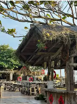 Order an iced drink and settle into seats crafted from stranded shipwrecks, where the lapping waves brush against your feet, carrying a faint salty chill. The evening breeze rustles through hanging fishing nets, whispering tales of voyages and homecomings.