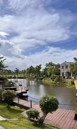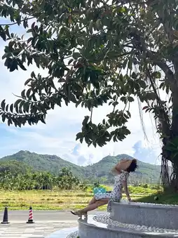 The village paths also hide clever details. The bluestone-paved roads have small pebbles embedded in the center, giving a solid feel underfoot, like walking in the courtyard of an old Republican-era house. On both sides grow banana trees and emerald bamboo; the banana leaves are broad like umbrellas, while the bamboo is slender like Jiangnan reeds. When the wind blows, the leaves rustle softly, making it hard to tell if it’s the wind of the coconut island or the rain of Jiangnan. At corners, you often come across an old well; its cement wellhead is in the Republican style but surrounded by a ring of stone millstones common in Jiangnan, with moist green moss embedded in the grooves.