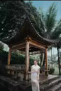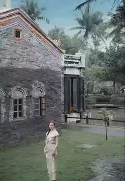 Walking slowly up the wooden stairs, the handrail is polished smooth by time. Occasionally, raindrops sneak in through the window cracks, spreading faint water stains on the yellowed walls. The viewing platform on the second floor offers a perfect view of Caijiazhai layered in the rain curtain. The gray tiles shine warmly in the rain, surrounding coconut trees sway gently in the wind, raindrops dripping from the leaves, and even the distant rice fields become blurred green shadows. Without deliberately searching for an angle, every snapshot captures the misty charm of the overseas Chinese hometown—no noise, only the whisper of rain and the mansion.