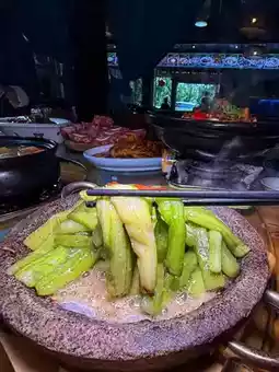 Fu Xiaoguan's hot spring goose is so delicious you'll want to lick the plate! This 30-year-old restaurant has a lively atmosphere, and locals flock to it every day! The average price per person is only 50 or 60 yuan. The wooden tables and chairs, accented by greenery, exude a Hainanese vibe. There's a line during mealtimes, so it's best to avoid rushing! Parking is also convenient if you're driving, so head straight to Baozi in Qionghai!