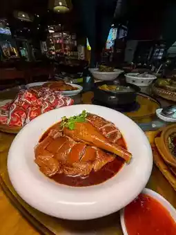 The wood-roasted skin is a brilliant golden red, and the crunch is so crispy it's almost shattering! The fat bursts in your mouth without being greasy at all, and the goose is incredibly tender and juicy, its texture brimming with fruity flavor. Trying the "Ice and Fire" method is a true delicacy – dip it in the scalding marinade and then simmer it in icy shaved ginger. The clash of hot and cold is unparalleled.
