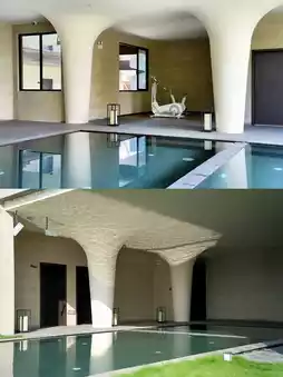 Sprawling courtyards become children's playgrounds, while outdoor panoramic hot springs relax body and mind in misty warmth;