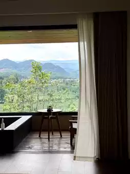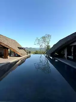 The terrace pools on the second and third floors offer a broader view, capturing the ripples of tea fields and the contours of distant mountains.