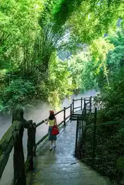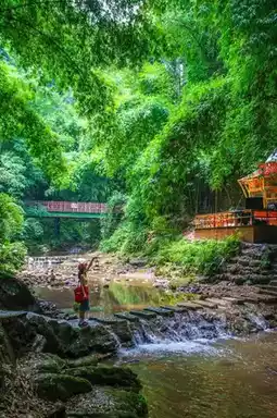 Arrive at South Gate before 10 AM to start hiking, passing through bamboo forest and stream tracing along the way