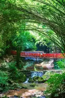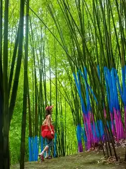 South Gate — Dopamine Colorful Bamboo Forest — "Western Sichuan Bamboo Sea" character wall — Stream tracing waterfall — Bamboo Sea concert — Glass plank road — Giant guitar on the mountain top — Dengyun rail small train / Bamboo Sea slide down the mountain