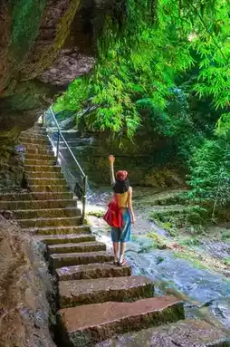 You can stay longer at the waterfall spot, where besides taking photos and playing in the water, you can rest and wait for the Bamboo Sea concert starting at 2 PM. The folk band sings beautifully, and there are watermelon eating and fish catching contests. Around 3:30 PM, continue hiking up the mountain, about 1 hour to reach the top, then take the 3-minute silky slide down the mountain.