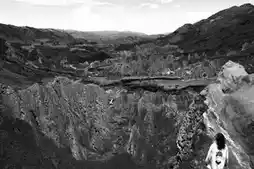 In Bamei Town, Ganzi Prefecture, Sichuan Province, there is a geological wonder resembling the surface of the moon, an "exotic planet." It is a masterpiece of nature's craftsmanship, known as the Bermuda Triangle of China's geology, and a famous hotspot along National Highway 318. This naturally formed geological marvel stands at an altitude of 3,500 meters on the Western Sichuan Plateau. It is the only plateau stone forest landscape in China and a rare mylonite stone forest in the world, with colors that change with the seasons. Tickets cost 60 yuan, and the sightseeing bus is 20 yuan. The park offers astronaut suits for rent, allowing visitors to simulate space exploration. If you can't go to the moon's surface, you can come here to experience lunar life. When surrounded by towering mountains and stone forests, enclosed by massive rocks, you truly feel how small humans are. I am Yang Guang, and travel is the most meaningful investment in life.