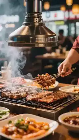 Beef brisket, beef tendon, and lamb chops, grilled over charcoal, sizzle and ooze with oil.