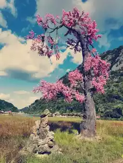 Ancient bridges, peach blossoms, and the lake and mountain scenery blend into one