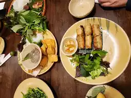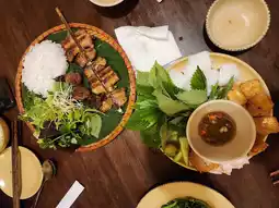 We ordered a lot of food! 🍽️ We ordered a variety of dishes, including Banh Xeo, Bun Cha, Banh Dom, Morning Glory, fried rice, dumplings, Chang Fun, skewers, etc. The food was delicious and the atmosphere was great! 😋 The food came out so much at once that I ate like I had starved for days 😂 It's a Michelin restaurant, but the prices are cheap and the atmosphere is great!