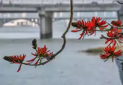 「Floral Delights in the Alleys: Erythrina Red Amidst the Hustle and Bustle」: