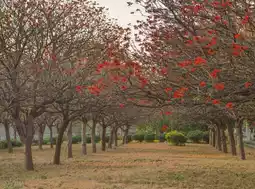 See how the Erythrina flowers ignite the ancient city with their red flames.