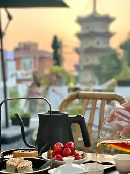 Upon arrival, I immersed myself in the ancient city. Red brick houses stood in picturesque disarray, stone paths wound through the streets, and the scent of tea drifted from old shops along the way. Stepping into a time-honored teahouse, the carved wooden door slowly opened, releasing a wave of delicate tea fragrance. Inside, wooden tables and chairs were neatly arranged, calligraphy and paintings adorned the walls, and lush green plants thrived in the corners.
