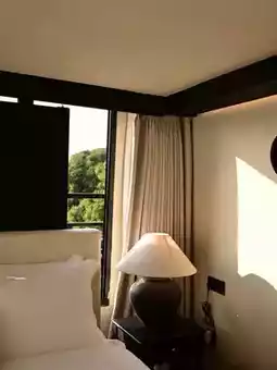 neutral tones paired with wooden furniture to create a warm and inviting atmosphere.