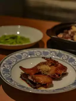 Royal clam and earthworm jelly, young pigeon legs braised with ginger, Changting River frog with salt wine