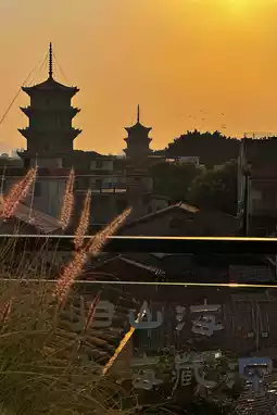Standing here, the view is incredibly expansive. The Twin Pagodas of Kaiyuan Temple bathed in the golden sunset glow are so beautiful you can't look away. The warm golden light spills onto the ancient towers, outlining their majestic yet gentle silhouettes, as if traversing a thousand years of time—the historical depth perfectly blends with the romance of sunset.