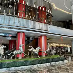 The hotel opened in 2022, so the whole hotel is quite new. The lobby is very distinctive, with several running horses and Quangang's Fu ship model at the entrance. The lobby bar next to the front desk is decorated in a very Chinese style with a classical flavor.