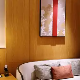 The room type we stayed in this time was a light luxury smart twin room. We checked in on Friday night. There were three of us staying together, and the average cost per person was over RMB 100 per night. The room is about 40 square meters and has a lot of space. The washing area is right at the entrance, and the bathroom is separated into dry and wet areas. The bed in the twin room is 1.35m long, so it is not crowded even for two people to sleep in. The decoration style of the room is very characteristic of southern Fujian, with patterns of red brick and tile houses on the walls. Our room is not facing the sea, but we can see the sea in the distance from the side.