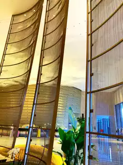 This isn’t just a hotel—it’s a grand ocean liner! The reception desk resembles the bow of a ship, while six towering sails stand opposite the front desk. The lobby is crowned with wavelike crystal chandeliers, and the stargazing bar, designed like a ship’s deck, exudes the elegance of a luxury hotel.