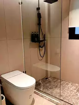 🌿 Spacious rooms with an overall wooden design, a separate wet and dry bathroom 🚾, smart toilet 🚽, projector 🎬, and my favorite—a large bathtub.