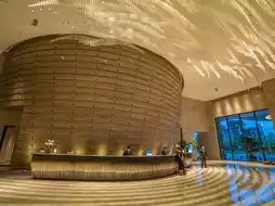 The hotel is designed with maritime culture as its core inspiration. The high-ceilinged lobby features a ship-like structure intertwined with crystal chandeliers, creating the imagery of a ship setting sail. The wave-like flowing art chairs on the ground further immerse guests in the romantic atmosphere of the Maritime Silk Road.