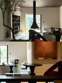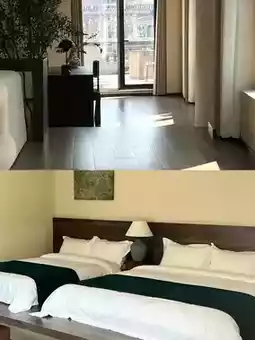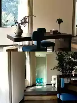 The homestay is hidden in a building on Tumen Street. As soon as I arrived downstairs, the housekeeper greeted me with a smile and helped with my luggage, and by the time I climbed to the third floor, I already had a clear map of the nearby food spots. The moment I opened the door, I was hit by a bright and spacious feeling: the sunken living room with a fireplace design, mint green stools making the wabi-sabi style even gentler, sunlight filtering through the shutters casting mottled shadows on the old wooden table—every snapshot looks like a French magazine spread.