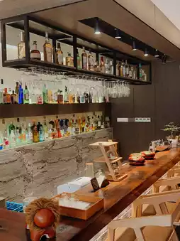 • Bar: Deep brown wood paneling frames a wall full of glassware, cool-toned marble and warm spotlights intertwine, bringing in Western culture. The owner has also collected many nearly century-old liquors, waiting for distinguished guests to savor!