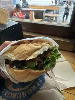 • Homemade Bread: The fluffy buns are baked fresh at the neighboring Fergbaker. 🥖