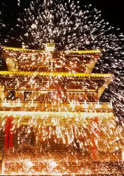 The Queshan Iron Flower Show integrates intangible cultural heritage skills into nighttime tourism. At night, the spectacular iron flower performance dazzles the audience as molten iron blooms in the air like fireworks. Around the show, a themed night market offers local snacks and handicrafts. Cultural exhibitions showcase the history and craftsmanship of the iron flower tradition. Nearby hotels feature iron flower-themed rooms, allowing visitors to fully immerse in Queshan's cultural charm at night. This attracts crowds of nighttime tourists, boosting local dining, accommodation, and other consumption, while promoting the prosperity of nighttime cultural tourism.