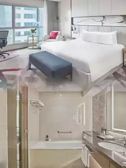 🛏 The room is simple yet stylish, the bed is soft, and the bedding is breathable and skin-friendly, making for a very comfortable stay. The smart devices are easy to use, and the city view from the window is amazing. The neon lights at night make for great photos.