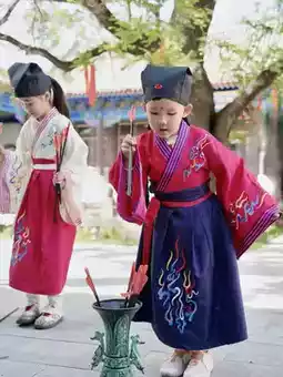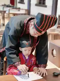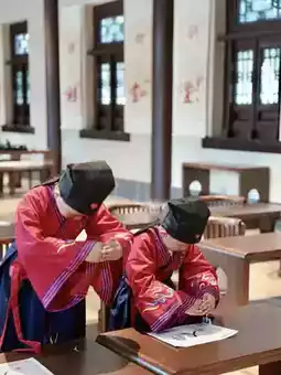 First Writing Ceremony, experiencing traditional culture: Dressing Properly - Vermilion Enlightenment - Drum Beating for Aspiration - Tracing Characters