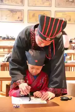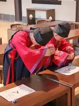 🖌️In the chapter of [Rituals], the initiation ceremony is solemn and sacred. "Wearing clothes properly" teaches children to pay attention to their appearance. "Applying cinnabar to enlighten wisdom" implies opening the door to wisdom. "Drumming to express aspirations" allows children to establish lofty ambitions. "Enlightenment and red tracing" writes the first "person" character in life, experiencing the principles of being a person. The Confucius tea ceremony uses tea as a medium to understand the way of etiquette.