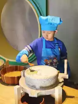 In addition, in the hotel's children's playground, you can also experience the intangible cultural heritage handicraft: stone-ground tofu. Children learn to use stone mills, witness the birth of tofu, and feel the joy of labor.