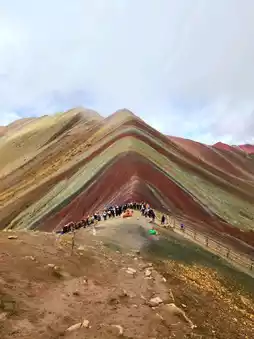 #holidayitinerary Exploring Rainbow Mountain is like stepping into a dream painted by nature itself. The journey starts early, with crisp mountain air and a landscape that slowly transforms as you climb higher into the Andes. The trail winds through rolling hills dotted with grazing alpacas, their calm presence adding to the serene atmosphere.