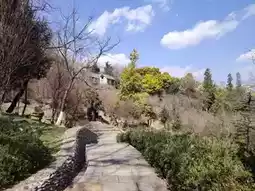 Looking around: pavilions and towers are built following the mountain terrain, and paths crisscross and wind around.