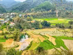 Especially in spring, the various colors of the fields and mountains blend together to create a spectacular view, and the Quoc Toan area in Cao Bang is especially beautiful. The unique mountain shape is much larger than Ninh Binh, and the terraced rice fields in between make you feel like you're in Sapa.