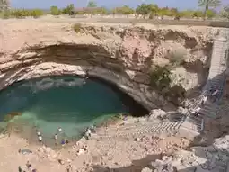 The Bimmah Sinkhole in Oman, located about an hour southeast of the capital Muscat, is a massive natural pool formed by a collapsed limestone bedrock. It's a signature natural attraction in Oman.