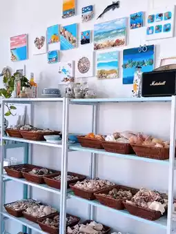 Outside the workshop, a spacious courtyard faces the sea, the sound of crashing waves adds to the relaxing atmosphere. Amidst the aroma of local coffee wafting gently from a small cafe nearby, visitors can relax, sip a drink, and watch the romantic sunset.