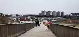 Quzhou Hall and Luming Grassland: We found our hotel, dropped off our luggage, and headed to Luming Mountain. We visited the marriage registration office, which is a very unique red building. There were many children playing on the "grassland" opposite. We crossed the internet-famous bridge and arrived at Shuitingmen on the other side of the Qu River.