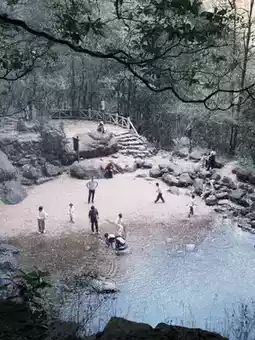 Besides the glass sky bridge and slide, there's a dedicated water play area for children. It's so much fun to watch them splash around and catch small fish! There are also several waterfalls on the mountain. On sunny days, you might even see a beautiful rainbow, which is incredibly refreshing. Oh, and there are macaques on the mountain too! Unfortunately, I wasn't lucky enough to get a good photo, as I only saw one from a distance.