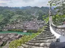 · Panoramic view: Here, you can see the Wuyang River meandering in an "S" shape through the ancient town, forming a natural Taiji pattern. The Qinglong Cave ancient architectural complex is built by the mountain and water, layered and stacked. The Miao Great Wall winds through the mountains.