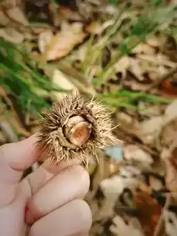 Today, he found a rock in the mountains. Because it was so heavy, he thought it must be a nugget of gold and held on to it tightly. He also found a wild chestnut, fuzzy and resembling a small hedgehog. After much effort, he cracked it open and harvested half a chestnut. He learned about plants like jujube, Schima superba, and goldenrod. He climbed high to see the distant horizon, covering his chest with leaves and calling them his green little hearts. He also collected fallen pine needles on the trail. Today was another day of transforming autumn into a long poem.