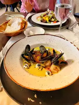 There aren’t many dining options nearby, so I usually eat at the hotel restaurant. The food there is excellent, especially the mussels. Among all the restaurants I’ve tried, this is the only one that serves mussels, so of course, I had to order them. The steak is tender, and I can never finish the fries 🫣.