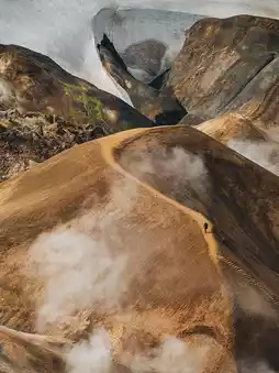 Nestled within the Kerlingarfjöll mountain range, Hveradalir is a geothermal valley shrouded in mist, with bubbling mud pools and ridges painted in vivid hues of orange, green, and other colors due to sulfur and mineral deposits. This is a true "wilderness wonder" in an uninhabited area.
