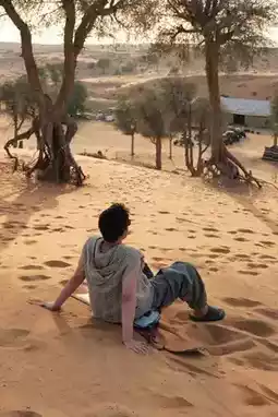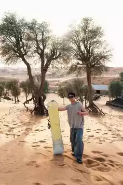 After dune bashing, I also tried sandboarding. It's similar to snowboarding, but the friction was much higher, making it less smooth—still, it made for great photos!