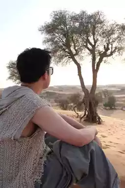 Just about an hour's drive from Dubai, you'll reach this mysterious desert camp. As soon as I stepped out of the car, the rolling sand dunes shimmered with golden light under the sun—barren yet spectacular—instantly making me feel like I'd stepped into a mystical world straight out of a movie.