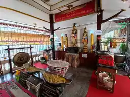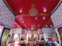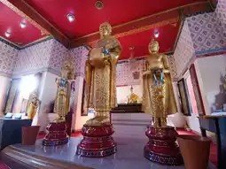 Luang Pho Kaenchan, the Buddha statue holding an alms bowl, is enshrined in a four-sided pavilion made of bronze. The lower part is carved from fragrant wood, sandalwood. Luang Pho Kaenchan is different from other Buddha statues holding alms bowls in that Luang Pho's alms bowl looks like it is being held in an alms bowl bag.