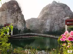 Located in the limestone mountain area in Khao Ngu Public Park, this place used to be a source of blasting and crushing rocks. The blasting and crushing of rocks in this area was cancelled, causing Khao Ngu to become an abandoned mine. Ratchaburi Province has therefore developed Khao Ngu into a public park. There will be a long bridge along the water for walking and sightseeing, suitable for relaxation.